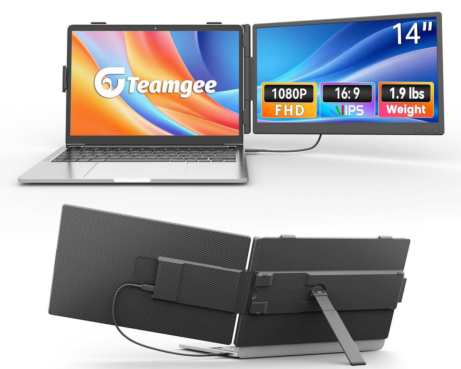 Teamgee 1|1" Laptop Bildschirm Erweiterung Ultra-dünner 1080P FHD Tragbar für Laptop